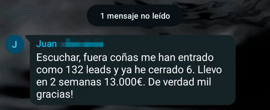 Gracias a EsoDelMarketing conseguí más de 15 leads y facturé más de 9.500 euros cerrando ventas en una sola semana